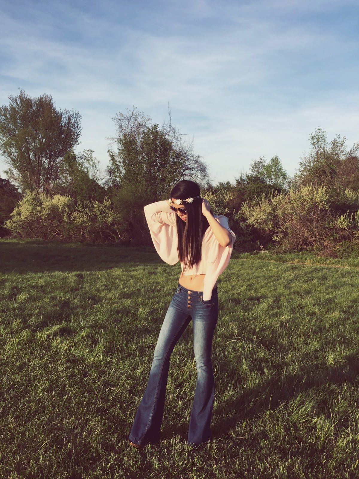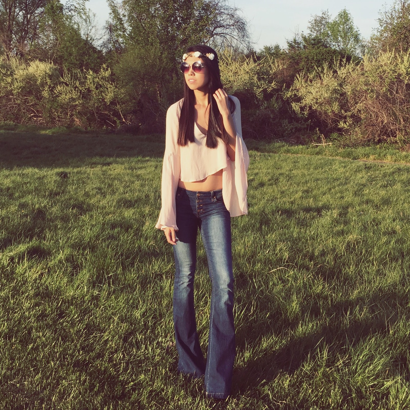 It's officially spring and I'm still in love with these bell bottom jeans, probably even more than I did when I first bought them last fall. The love is so strong that I am pairing them with a bell sleeve shirt. That's right, guys... flare all around! It's a little too hippie, a little too Coachella, a little too crazy for a casual trip out of the house but I'm also completely ok with that.